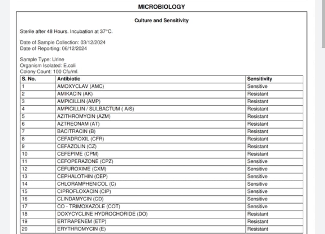 URINE CULTURE SENSITIVITY