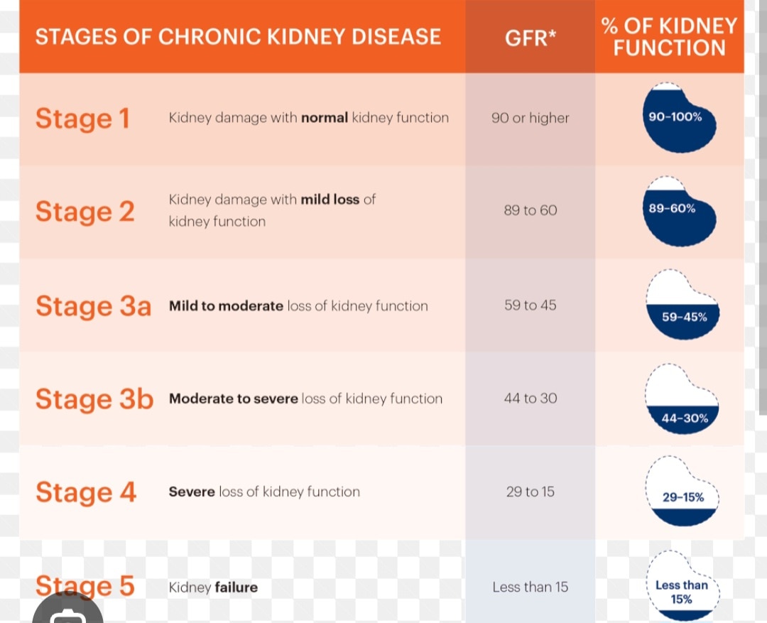 An eGFR (estimated glomerular filtration rate) is a blood test that measures how well your kidneys are filtering waste from your blood, using a formula that includes your age, sex, and creatinine levels. A lower eGFR indicates poorer kidney function and can help diagnose chronic kidney disease (CKD) and its stages. A healthy eGFR is generally 90 or higher, while levels below 60 for three months or more suggest kidney disease. What the eGFR Test Does Measures kidney function: It estimates the rate at which your kidneys filter waste and excess fluid from your blood. Uses a formula: The test calculates the eGFR using a blood test to measure creatinine (a waste product from muscle tissue), along with other factors like age, sex, and body size. Detects kidney problems: A lower eGFR can signal kidney damage, even before symptoms appear, and helps in diagnosing and staging kidney disease. What Your eGFR Results Mean Normal range: An eGFR of 90 or higher is considered normal. Early-stage kidney disease: An eGFR of 60-89 may indicate early-stage kidney disease. Chronic kidney disease (CKD): A value below 60 for three months or more can indicate kidney disease or damage. Kidney failure: An eGFR of 15 or lower may be a sign of kidney failure. When the eGFR Test is Used Screening: To check for kidney disease in people with no symptoms. Diagnosis: To help diagnose kidney disease in people with symptoms. Monitoring: To track the progress of chronic kidney disease and evaluate treatment effectiveness. Pre-treatment checks: To assess kidney health before certain medical treatments. Factors Affecting eGFR Age: eGFR naturally decreases as people age. Sex: Biological sex is a factor in the calculation. Creatinine levels: The level of creatinine in the blood is a key component of the eGFR calculation. Other factors: Factors like muscle mass, diet, and very high body weight can influence creatinine levels and therefore the eGFR calculation.