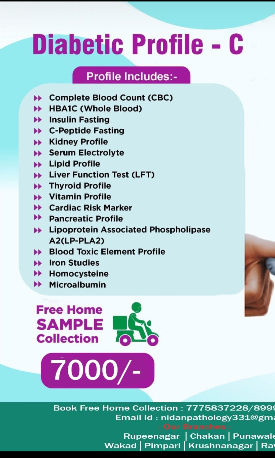 A "diabetic profile test" is a package of blood and urine tests used to diagnose, monitor, and manage diabetes and its related complications. It typically includes tests for Fasting Blood Glucose (FBG), Glycosylated Hemoglobin (HbA1c), Kidney Function Tests (KFT), Liver Function Tests (LFT), and a lipid profile to check cholesterol levels. These tests assess blood sugar control, evaluate kidney and liver health, and check for heart disease risk factors, with some profiles including tests for autoimmune markers or thyroid function for more comprehensive management Welcome to Nidan Pathology Laboratory, your trusted partner in comprehensive healthcare services., we specialize in delivering accurate pathology blood tests and preventive health check packages. Our commitment lies in providing accessible healthcare solutions to the residents of Pimpri Chinchwad Pune city. With a focus on convenience and affordability, we offer free home collection services, ensuring that healthcare remains convenient and accessible to all. Experience quality healthcare services at affordable prices with Nidan Pathology Laboratory – your trusted healthcare partner in Pimpri Chinchwad Pune. We are fast growing health care organization. A pioneer in the health care arena, Nidan Pathology Laboratory has been at the fore front of world class health care services. Our fundamental mission is to propagate healthier living for all our citizen. Nidan Pathology Laboratory is doing a pivotal role in raising the bar of health diagnostic accuracy, technological equipment, customer experience and research-driven empathetic service in the health industry. The company runs health care services like-: pharmaceutical, herbal & nutraceutical company, other hand company also working with hospitals & clinic, diagnostics, ambulance services, blood bank, ngo, old age home care, pet care & medicine, nursing services, online medicine, online consultation, and also work with concept of health care @ the home services. In our country the healthcare industry is undergoing a revolutionary change due to the increasing awareness about lifestyle disease, growth in gdp, knowledge about preventive healthcare, growing health insurance market, and growing government expences on healthcare. Why Choose Nidan Pathology Laboratory? Regular checkups are an essential part of maintaining good health. At our pathology lab, we offer a comprehensive range of services to help you stay on top of your health game. Our team of experts is committed to providing you with the highest level of care and support, using the latest technology and techniques. Mission, Vision, Value MISSION A reliable, one-stop-solution for all healthcare needs of all categories of patients. To create impact by becoming an active participant in local community initiatives and contribute to its well-being and development. Vision At Nidan Pathology Laboratory we aim to dedicate ourselves to human care through excellence in health care services and improving health standards through preventive care. Value QUALITY EFFICIENCY COST INNOVATION DEPENDABILITY SPEED