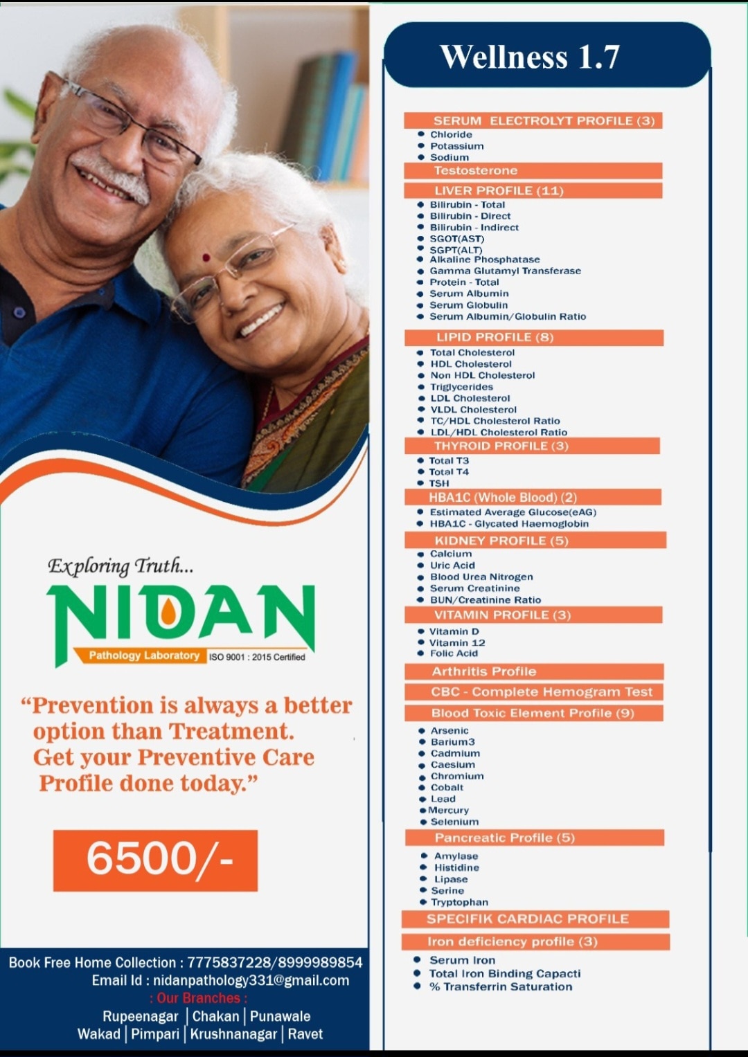 Glycosylated hemoglobin, also known as HbA1c or glycated hemoglobin, is a blood test that provides an average of your blood sugar (glucose) levels over the past two to three months. This test is used to diagnose prediabetes and type 1 or type 2 diabetes and to monitor how well diabetes is being managed over time. The test works because glucose naturally sticks to hemoglobin in red blood cells, and the higher your blood sugar levels, the more glucose attaches to the hemoglobin. Since red blood cells have a lifespan of about 3 months, the HbA1c test reflects your average blood glucose over this period. A of blood tests used to assess the health of your liver, kidneys, heart, and iron levels. Liver Function Test (LFT) measures enzymes, proteins, and bilirubin to check for liver damage, inflammation, or disease. Kidney Function Test (KFT) (also called Renal Profile) assesses kidney health by checking creatinine, urea, and electrolytes. Lipid Profile measures cholesterol (LDL, HDL) and triglycerides to evaluate cardiovascular risk. Iron Test (often part of a comprehensive health checkup) assesses your iron levels to help detect anemia or iron overload. These tests, sometimes offered as a comprehensive health panel, are recommended for routine health screenings, monitoring chronic conditions like high blood pressure, diabetes, or obesity, or if symptoms of kidney or liver issues appear. Welcome to Nidan Pathology Laboratory, your trusted partner in comprehensive healthcare services., we specialize in delivering accurate pathology blood tests and preventive health check packages. Our commitment lies in providing accessible healthcare solutions to the residents of Pimpri Chinchwad Pune city. With a focus on convenience and affordability, we offer free home collection services, ensuring that healthcare remains convenient and accessible to all. Experience quality healthcare services at affordable prices with Nidan Pathology Laboratory – your trusted healthcare partner in Pimpri Chinchwad Pune. We are fast growing health care organization. A pioneer in the health care arena, Nidan Pathology Laboratory has been at the fore front of world class health care services. Our fundamental mission is to propagate healthier living for all our citizen. Nidan Pathology Laboratory is doing a pivotal role in raising the bar of health diagnostic accuracy, technological equipment, customer experience and research-driven empathetic service in the health industry. The company runs health care services like-: pharmaceutical, herbal & nutraceutical company, other hand company also working with hospitals & clinic, diagnostics, ambulance services, blood bank, ngo, old age home care, pet care & medicine, nursing services, online medicine, online consultation, and also work with concept of health care @ the home services. In our country the healthcare industry is undergoing a revolutionary change due to the increasing awareness about lifestyle disease, growth in gdp, knowledge about preventive healthcare, growing health insurance market, and growing government expences on healthcare. Why Choose Nidan Pathology Laboratory? Regular checkups are an essential part of maintaining good health. At our pathology lab, we offer a comprehensive range of services to help you stay on top of your health game. Our team of experts is committed to providing you with the highest level of care and support, using the latest technology and techniques. Mission, Vision, Value MISSION A reliable, one-stop-solution for all healthcare needs of all categories of patients. To create impact by becoming an active participant in local community initiatives and contribute to its well-being and development. Vision At Nidan Pathology Laboratory we aim to dedicate ourselves to human care through excellence in health care services and improving health standards through preventive care. Value QUALITY EFFICIENCY COST INNOVATION DEPENDABILITY SPEED